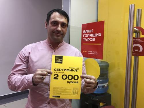 Обратилась в Банк горящих туров в Бийске потому как был подарочный сертификат. Понравился сервис в офисе продаж и удобный подбор тура на сайте компании. Жду скидок в будущем! ...