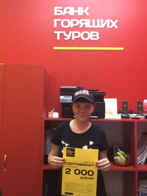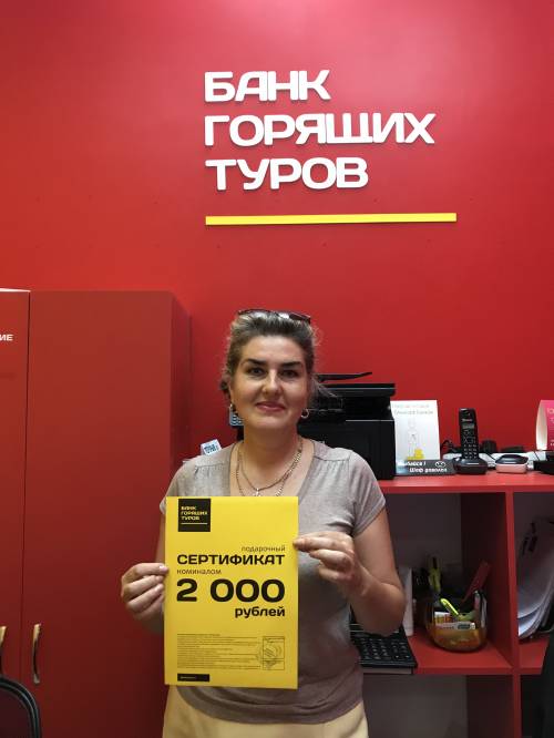 Первый раз обратилась в Банк горящих туров - здесь самые привлекательные цены. Понравился сервис в вашем офисе продаж. Удобно искать туры на официальном сайте компании. Желаю процв...
