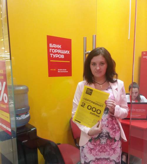 Второй раз приобрела тур в Банке горящих туров. Здесь дешевле, нравится сервис и удобный сайт. Желаю компании расширения, в будущем жду больше офисов в Междуреченске....