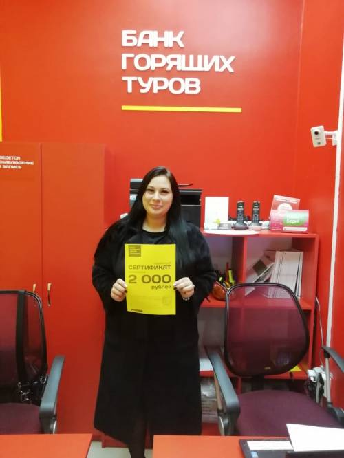 Первый раз обратились в офис Банка горящих туров в Бийске. Удобно, что есть рассрочка. Понравилось обслуживание и удобный сайт компании. Ждем новых отличных предложений....